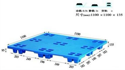 單面塑料托盤只能一面使用,表面有網(wǎng)格狀和平板狀兩種,底部有川字型、田字型、九腳型。